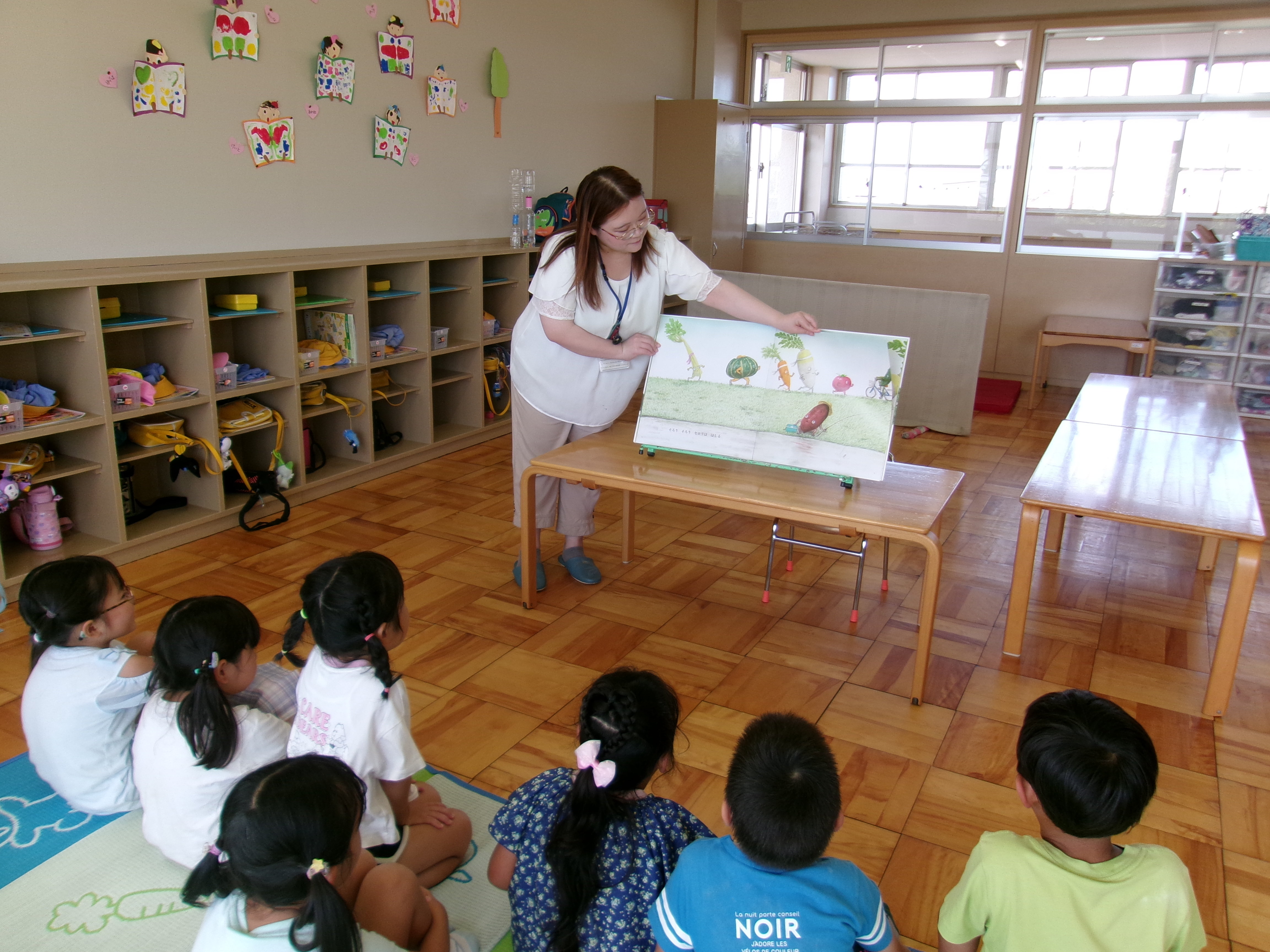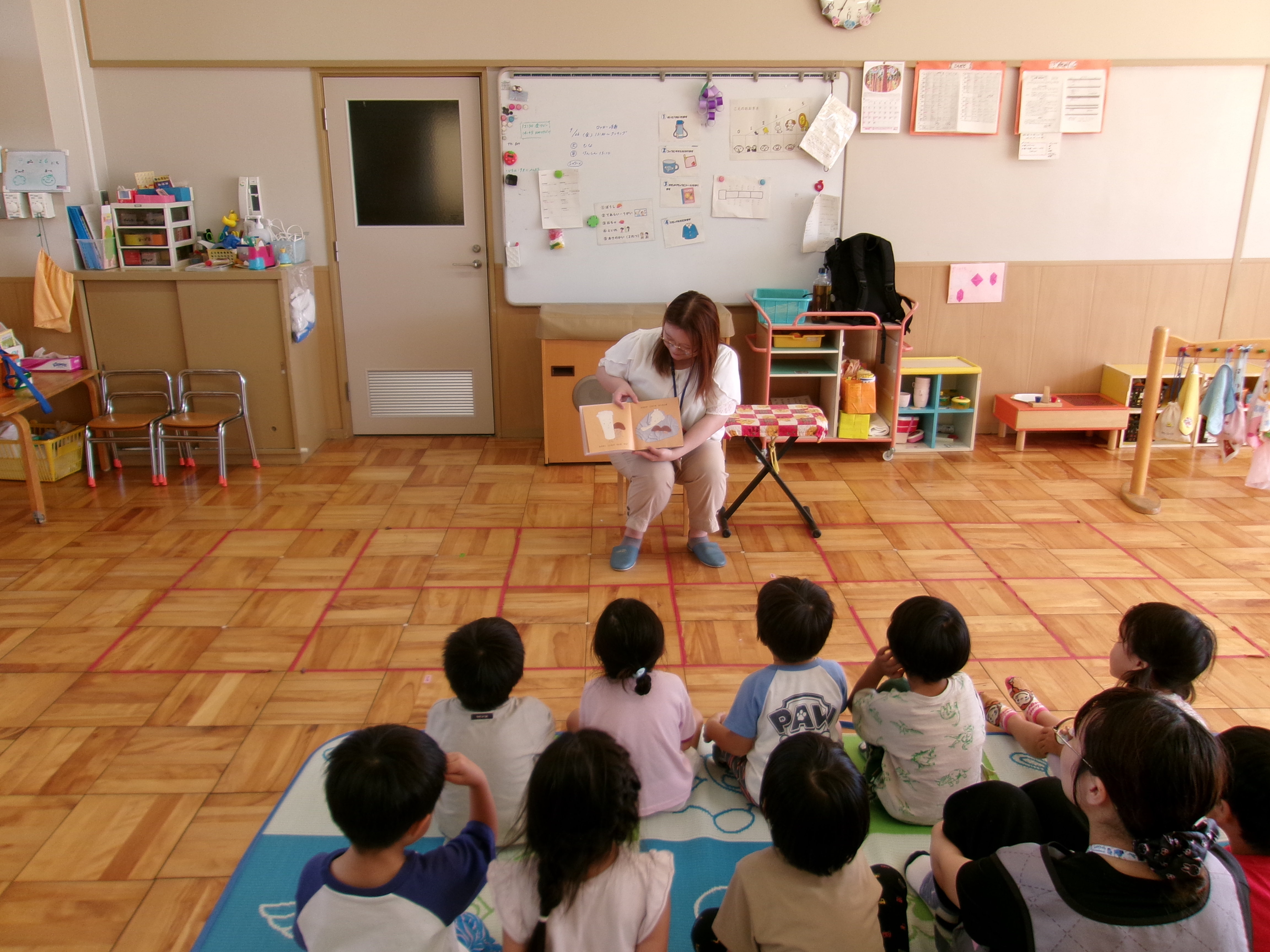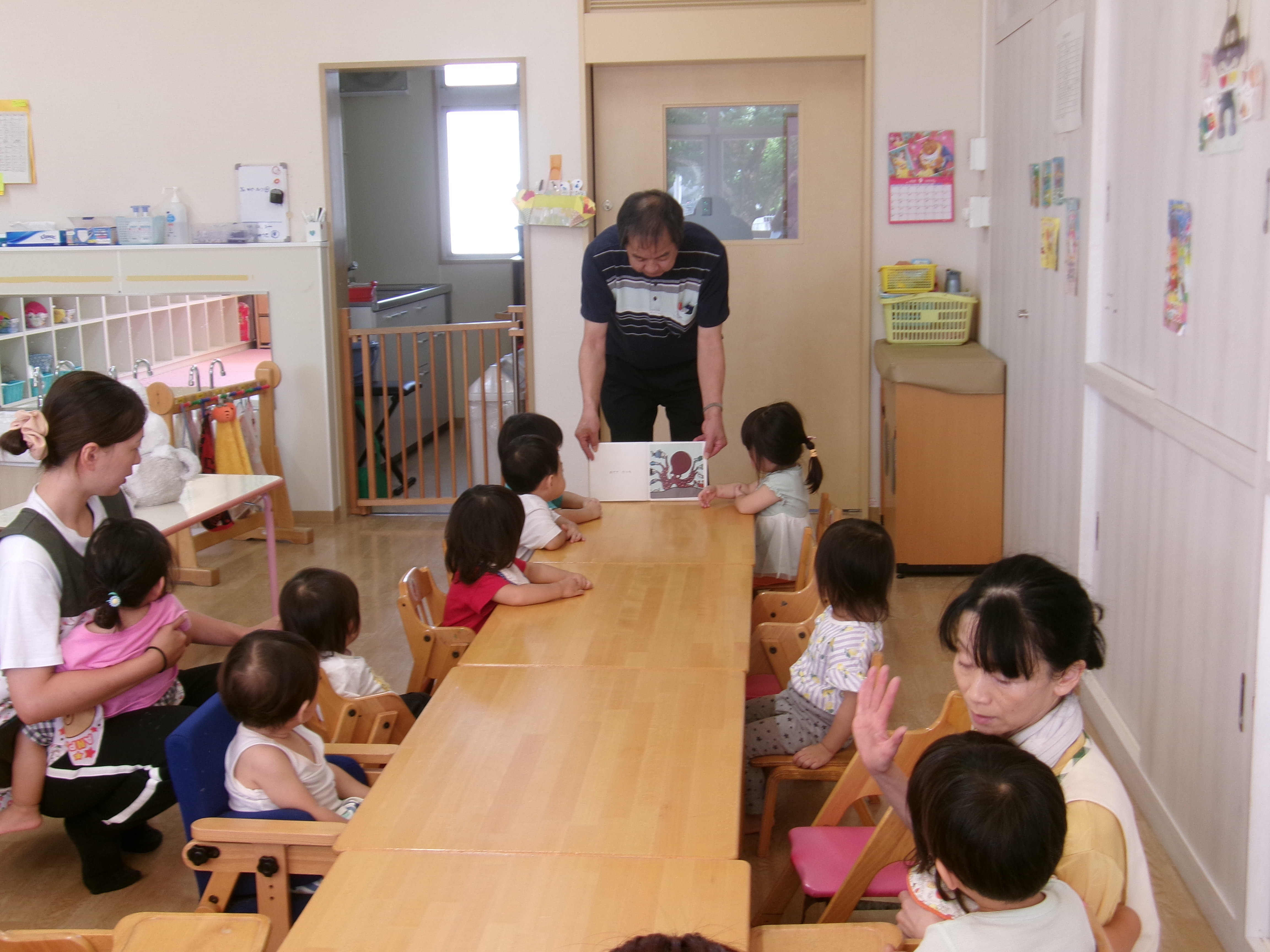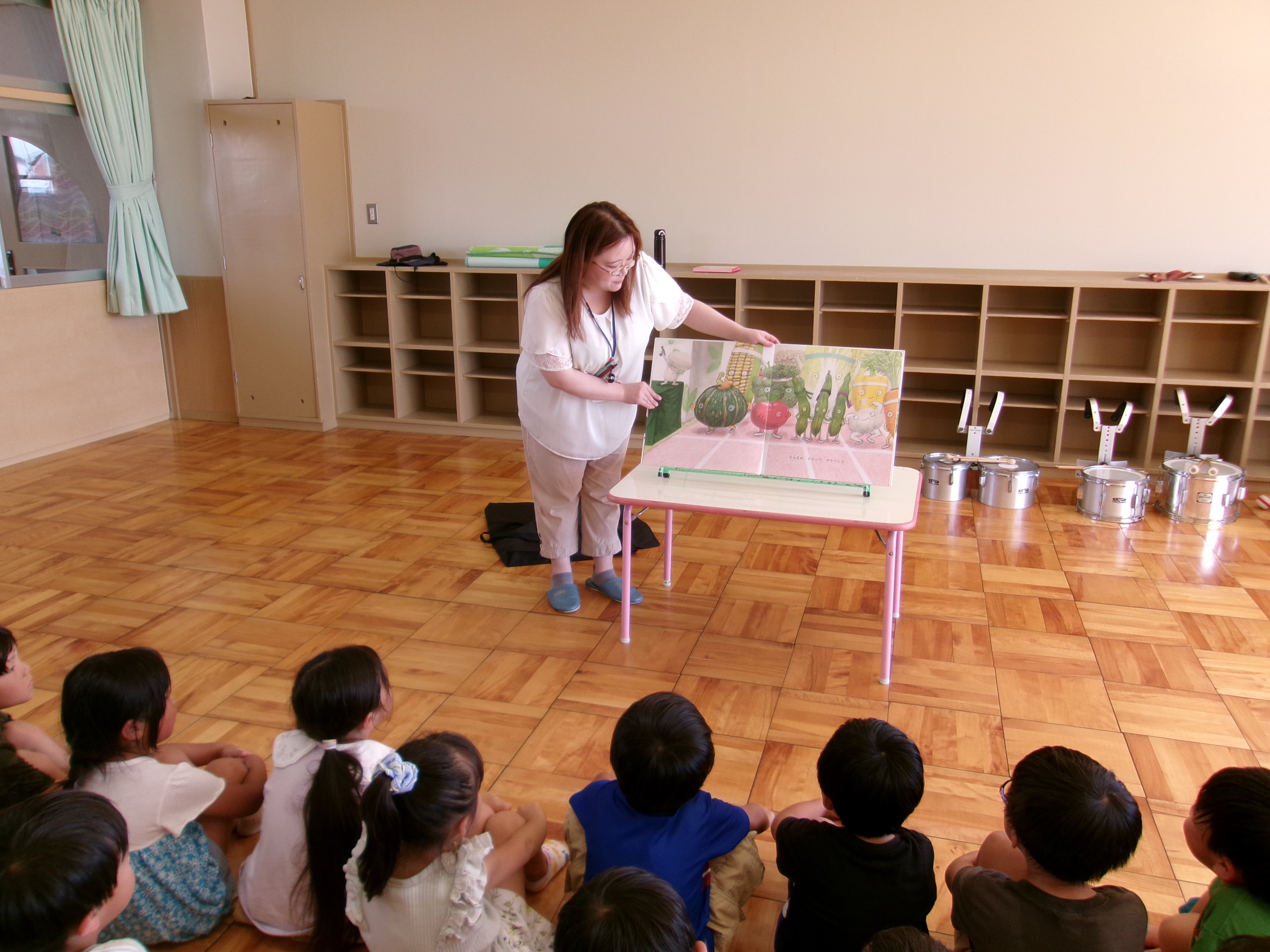 9月の出前読み聞かせに行ってきました 9月26日に第一保育所に出前読み聞かせに行ってきました。 【第一保育所】 『おててたっち』 「おててたっち」で先生と一緒に自分のおててをたっちしていました。 『いろいろきのこ』 「どれがすき?」と聞くと、自分の好きなきのこを教えてくれました。 『おやおや、おやさい』 ページをめくるたび、言葉遊びに大爆笑していました。