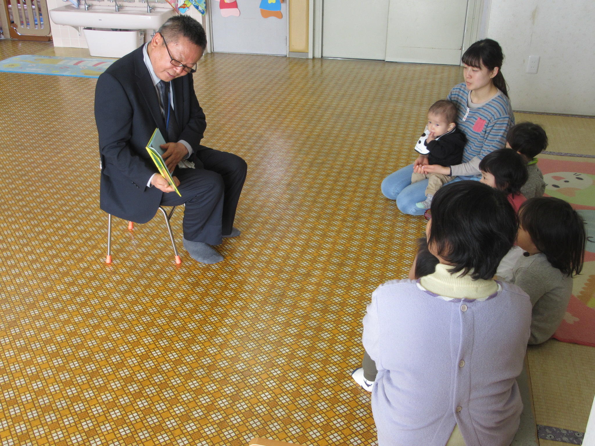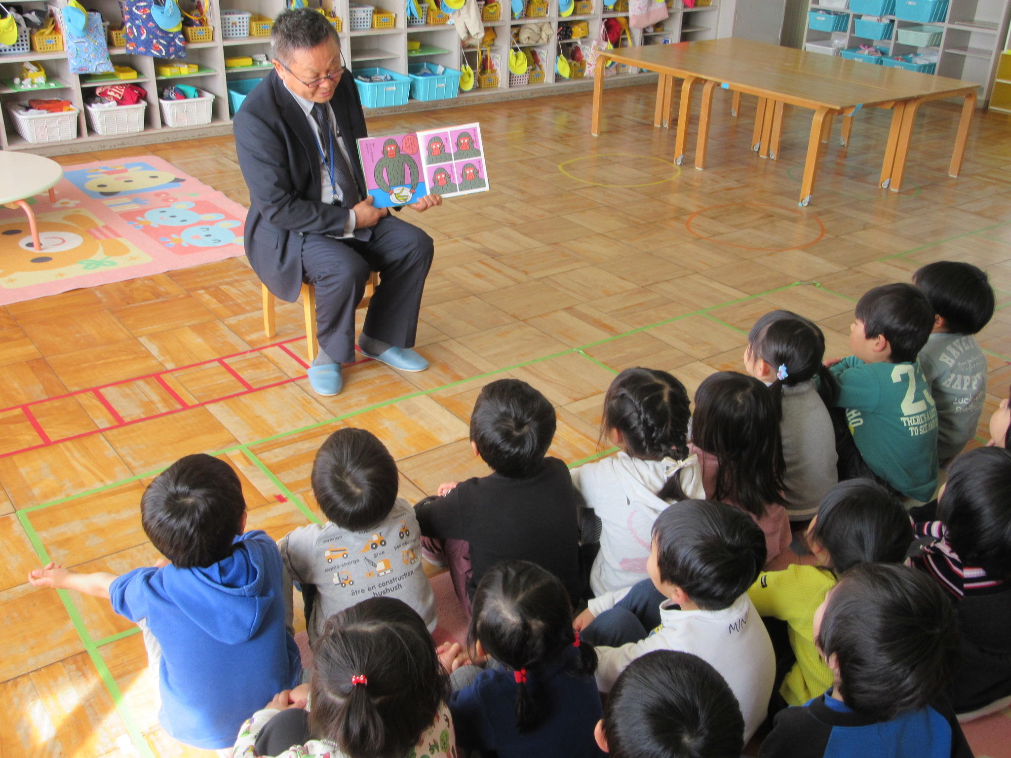 2月の出前読み聞かせに行ってきました 2月22日に第一保育所に出前読み聞かせに行ってきました。 【第一保育所】 『ぐるぐるちゃん かくれんぼ』 一緒に「もういいかい まだだよ」と かくれんぼしました 『ぼくなにをたべてたかわかる?』 みんなでゴリラがなにをたべてたか当てて楽しみました