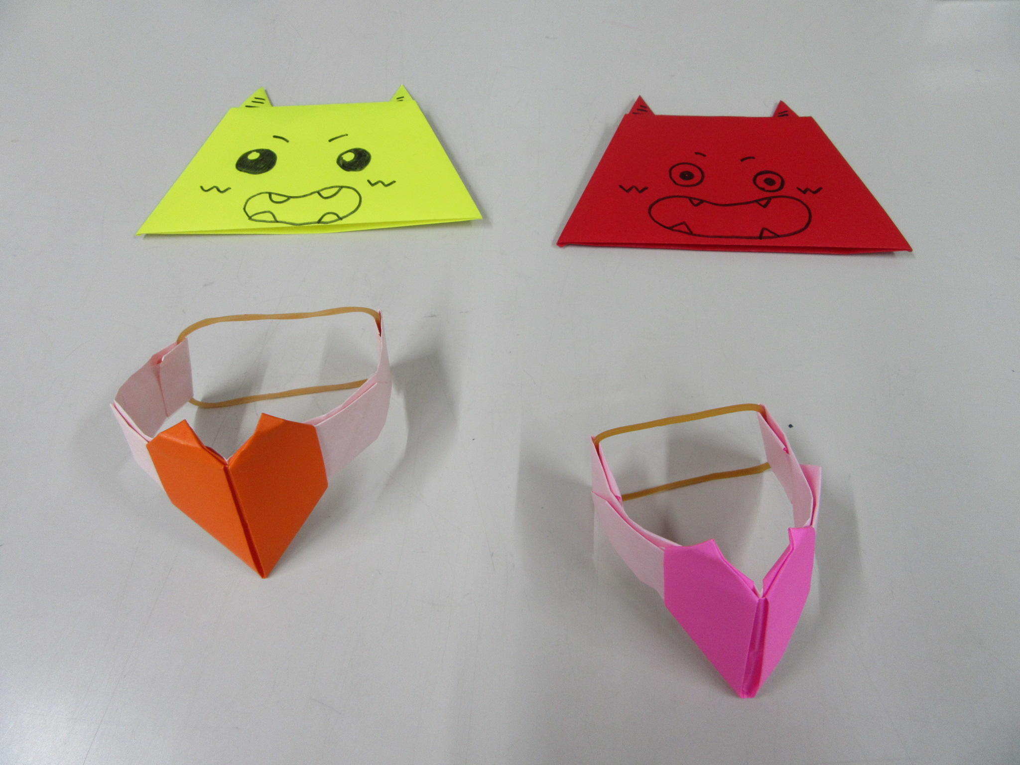 「鬼」と「ハートの指輪」を折りました。