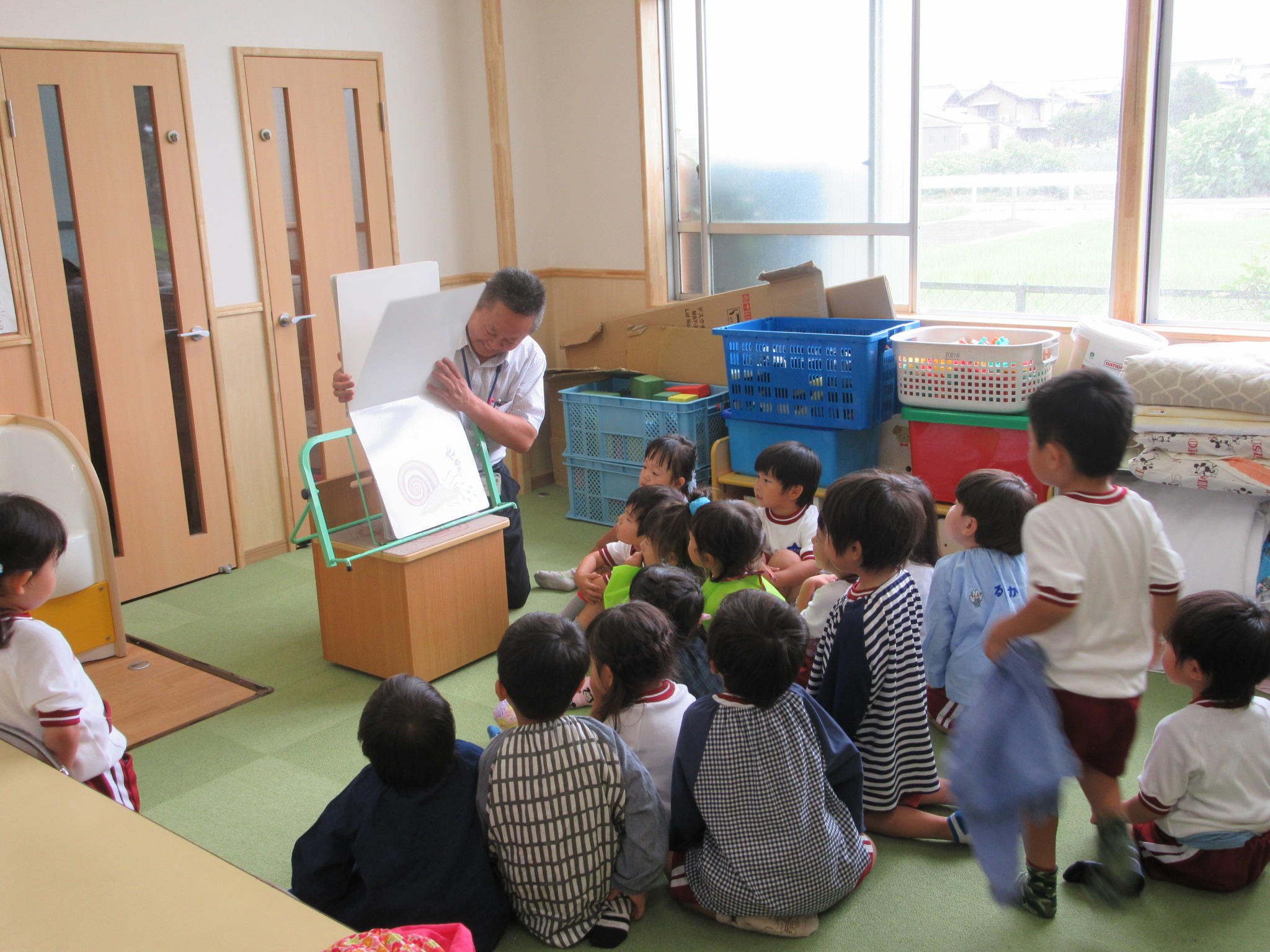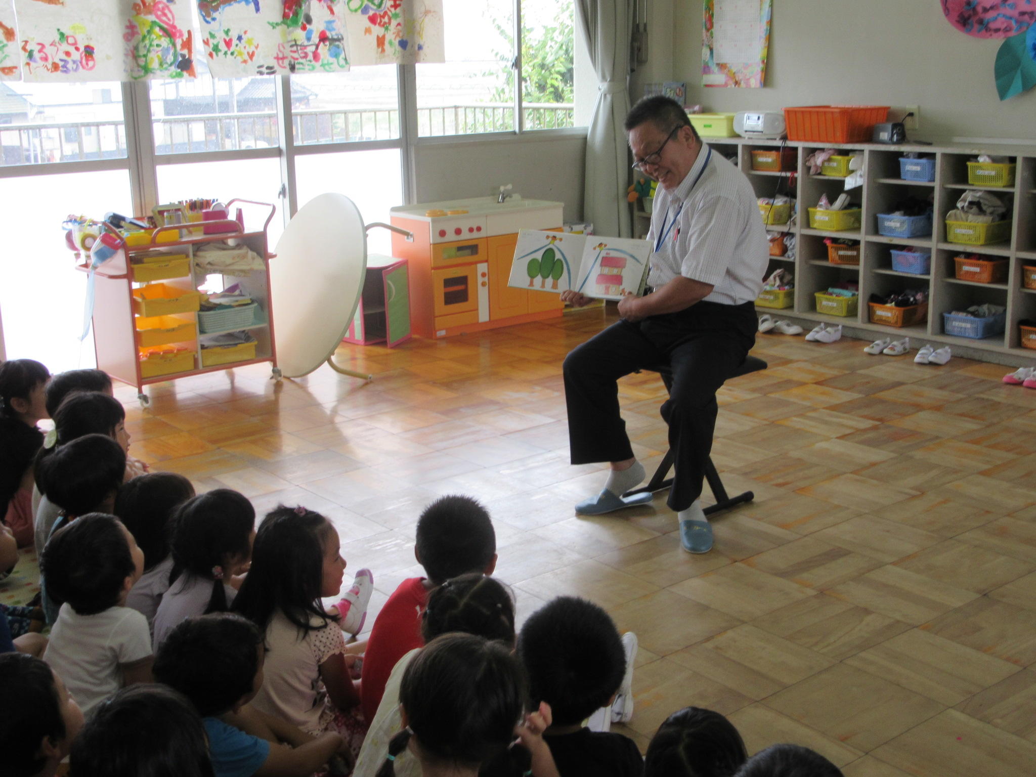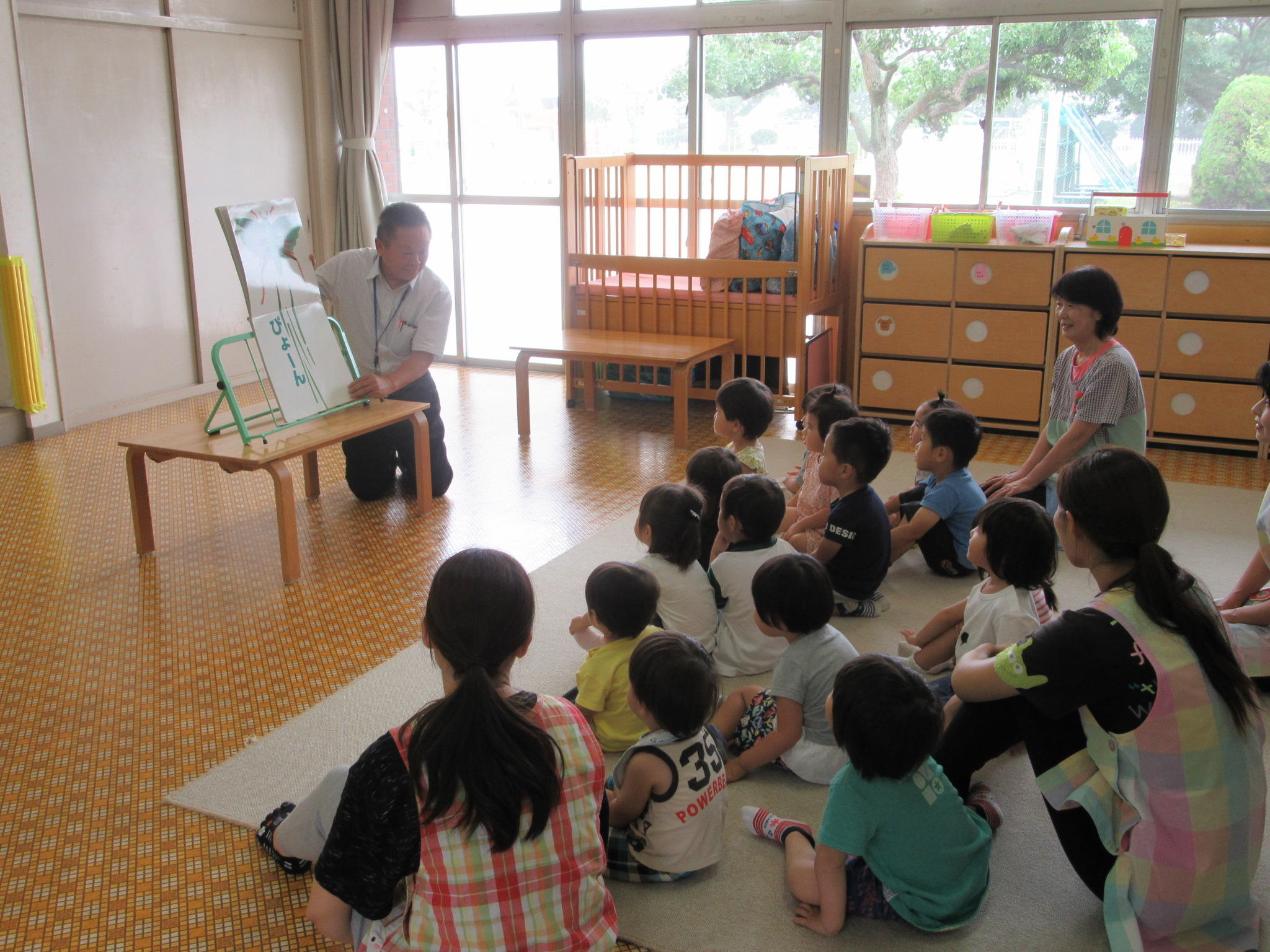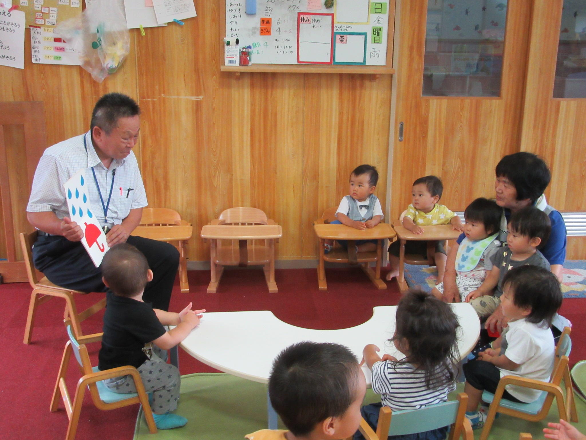 6月の出前読み聞かせに行ってきました。 6月29日に第一保育所と飛島保育園に出前読み聞かせに行ってきました。 【第一保育所】 『ひょいひょいひょい』 おどろきながら楽しそうに聞いていました。 『ぴょーん』 一緒になって「ぴょーん」と言いながら楽しく聞いていました。 【飛島保育園】 『ぴょーん』 一緒にジャンプしながら聞いていました。 『ぽつぽつぽつ』 静かに楽しそうに聞いていました。