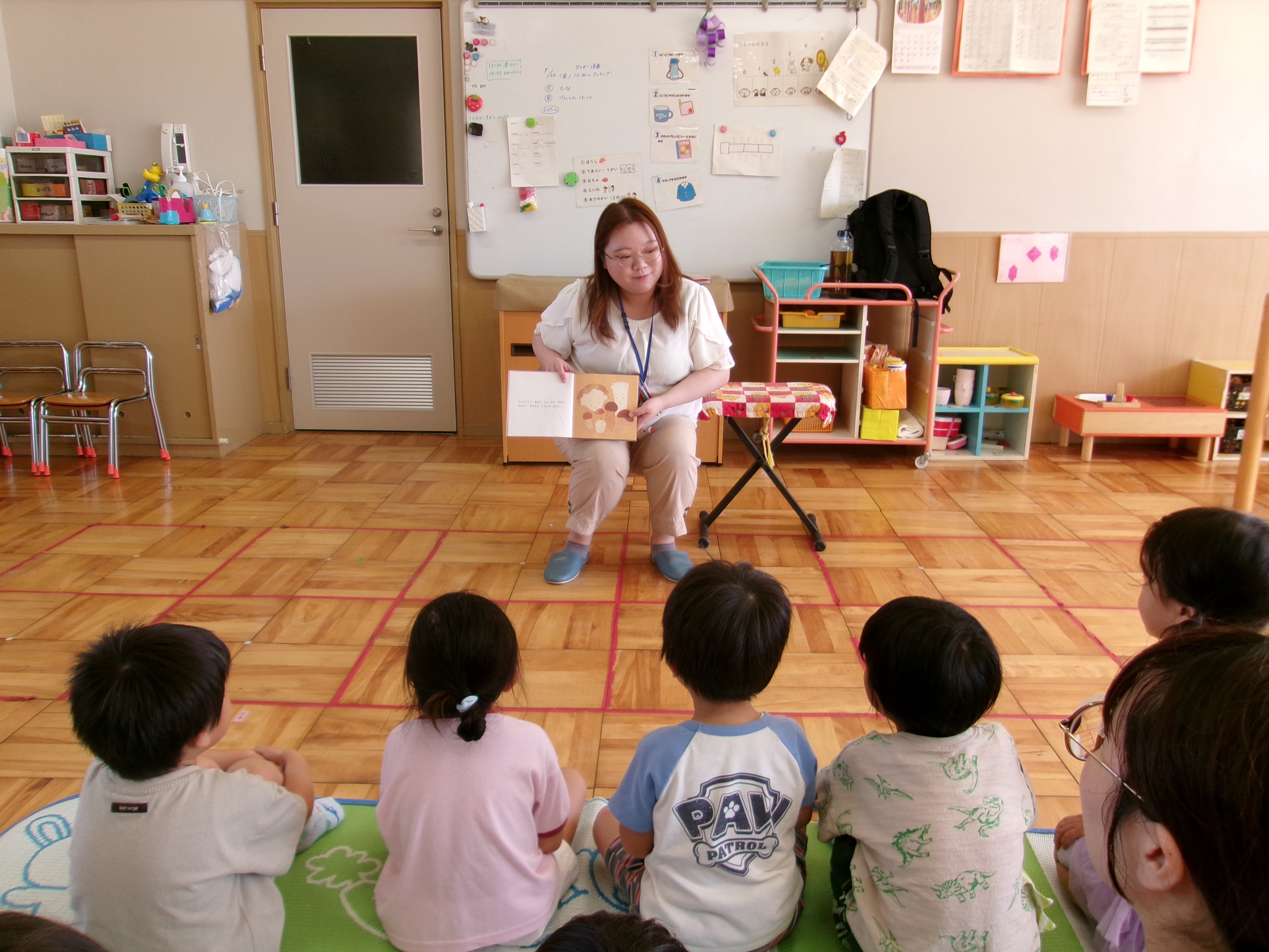9月の出前読み聞かせに行ってきました 9月26日に第一保育所に出前読み聞かせに行ってきました。 【第一保育所】 『おててたっち』 「おててたっち」で先生と一緒に自分のおててをたっちしていました。 『いろいろきのこ』 「どれがすき?」と聞くと、自分の好きなきのこを教えてくれました。 『おやおや、おやさい』 ページをめくるたび、言葉遊びに大爆笑していました。