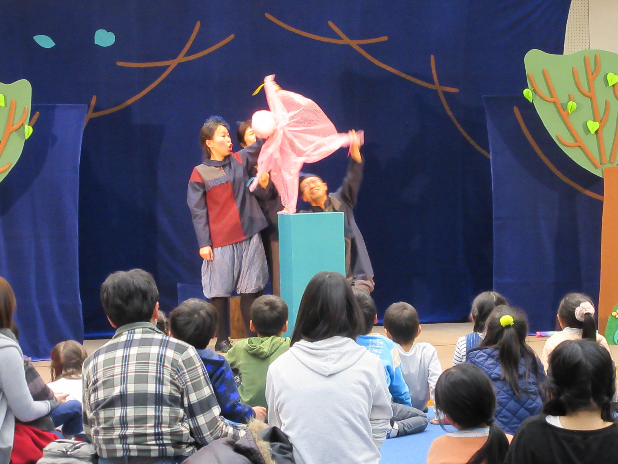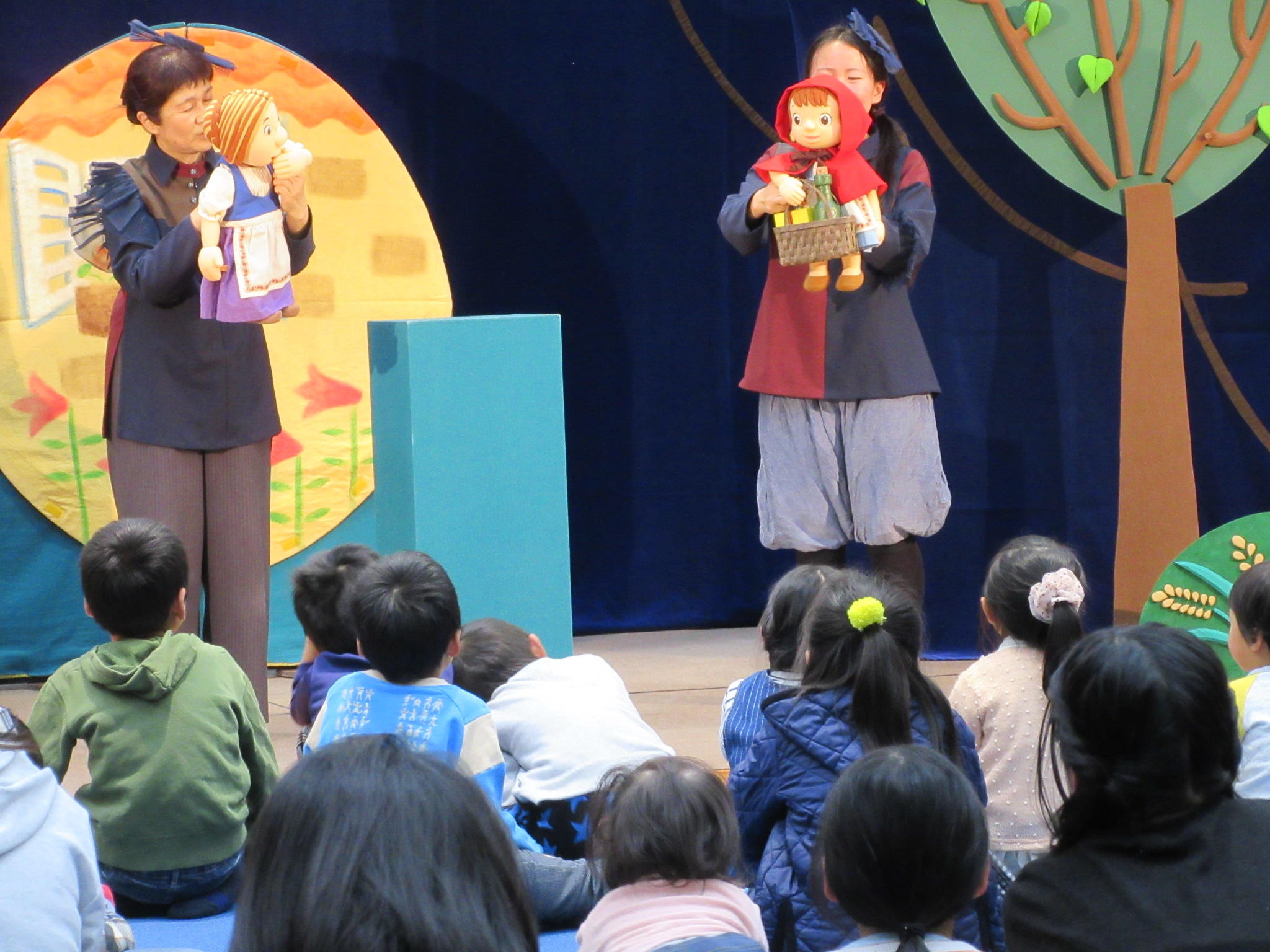 人形劇を公演しました 第1幕「プッペンポップなにつくろ?」 〇が猫になったり、△がピラミッドになったり、✖がちょうちょになったりと 楽しい絵描きうたを子供たちを交えて楽しんだり、 紙コップやビニールが人形に変身したりするアート的な作品でした。 第2幕「あかずきんちゃん」 天真爛漫のあかずきんちゃんが おばあちゃんのいえにお使いに行く ハラハラドキドキいっぱいのたのしい人形劇でした。 ♪ ほんとうにたくさんのご来場、ありがとうございました。 ♪