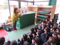 2月の出前読み聞かせに行ってきました 2月24日に第一保育所と飛島保育園に出前読み聞かせに行ってきました。 【第一保育所】 『だるまさんの』 「め」「て」「け」と、自分と同じ部位を指さしたり、引っ張ったりしていました。 『ぜったいにおしちゃダメ?』 「ボタンおしちゃえー!」と言って、ポチッポチッと押していました。 最後はみんなで好きなだけボタンを押しました。 【飛島保育園】 『だるまさんの』 「だるまさんの」に合わせて体を揺らしていました。 『ぜったいにおしちゃダメ?』 「ボタン押しちゃダメ―!」と盛り上がっていました。