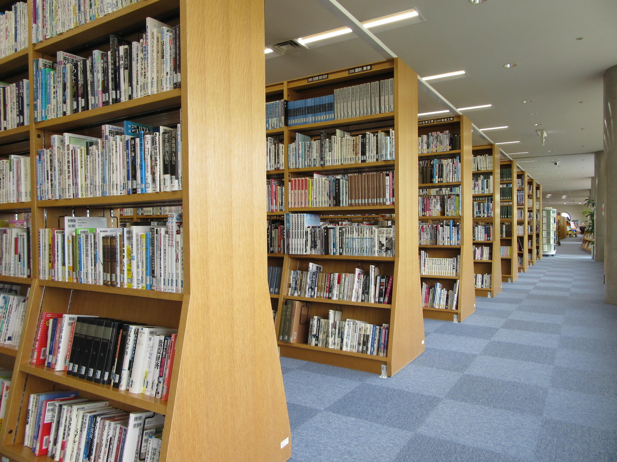 館内案内 (1)一般書コーナー (2)児童書コーナー (3)視聴覚資料コーナー (4)おはなし広場 (5)中央展示コーナー (6)ブラウジングコーナー (7)検索機 (8)デジタルサイネージ (9)受付カウンター