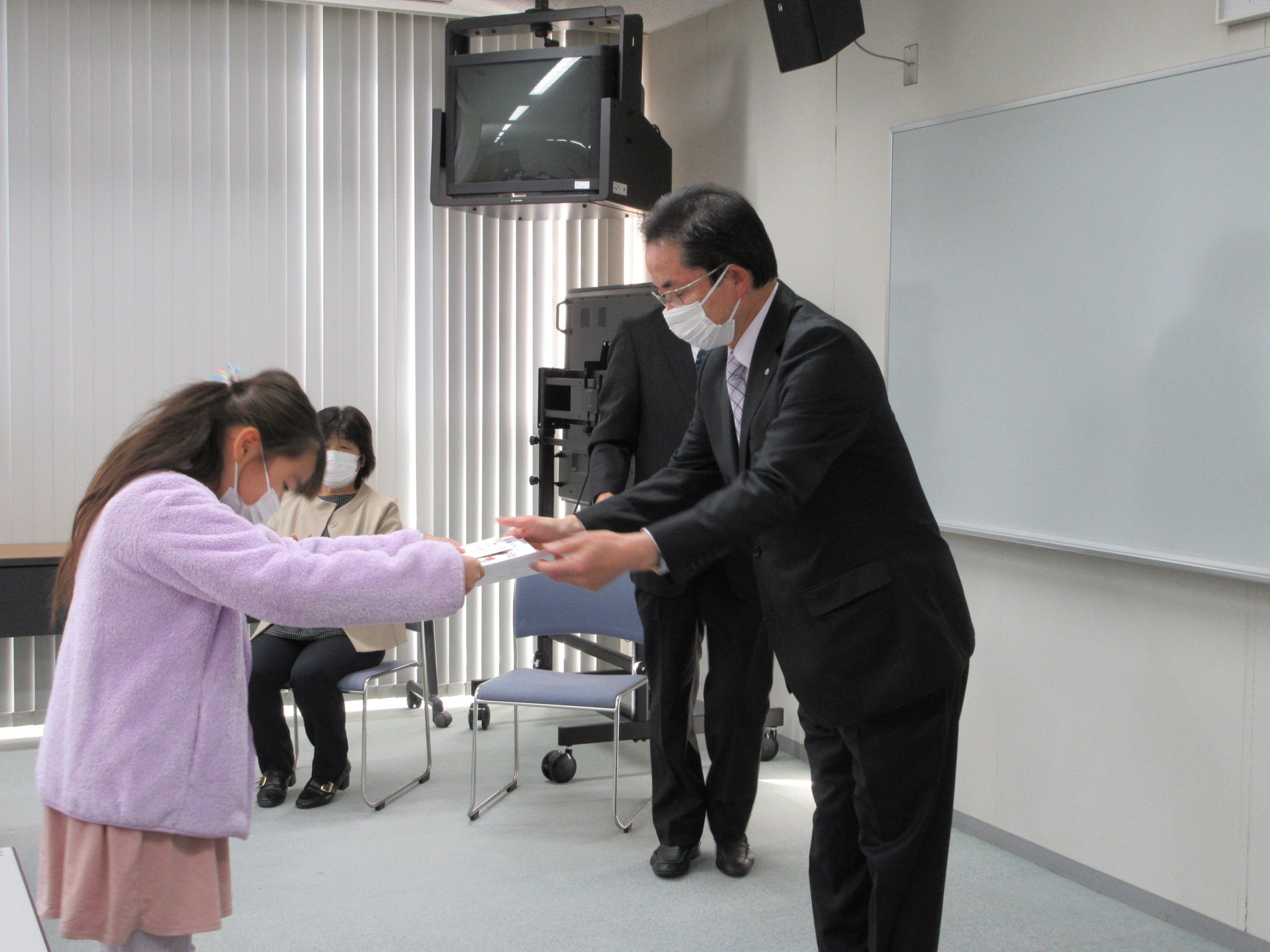 12月から新しく配布となった読書手帳の、子ども用デザインの表紙を手掛けたお子様2名に、