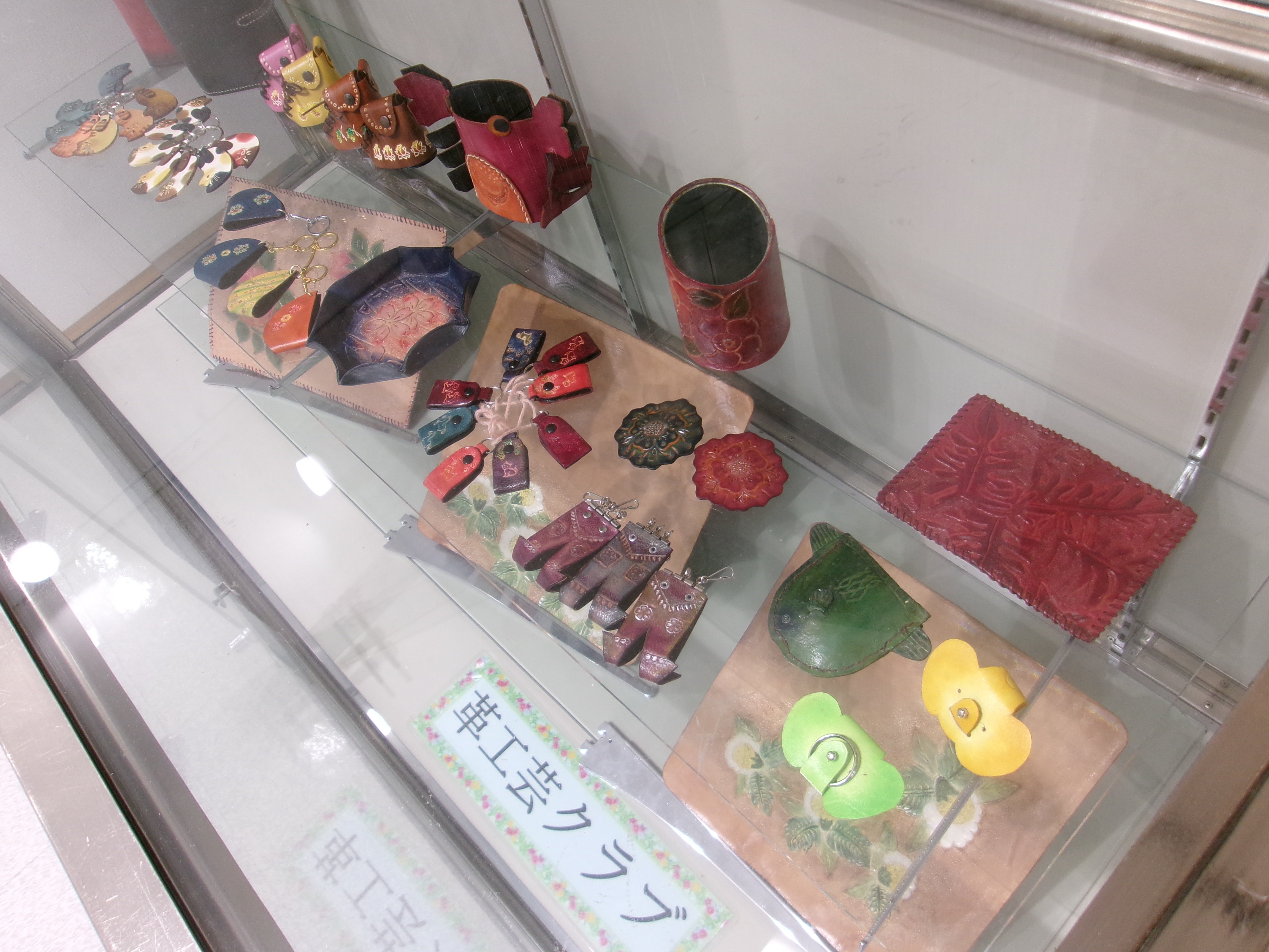 墨翔会・レザークラフト(革工芸)クラブの皆さんの作品を11月末まで展示していますので、是非ご覧ください。