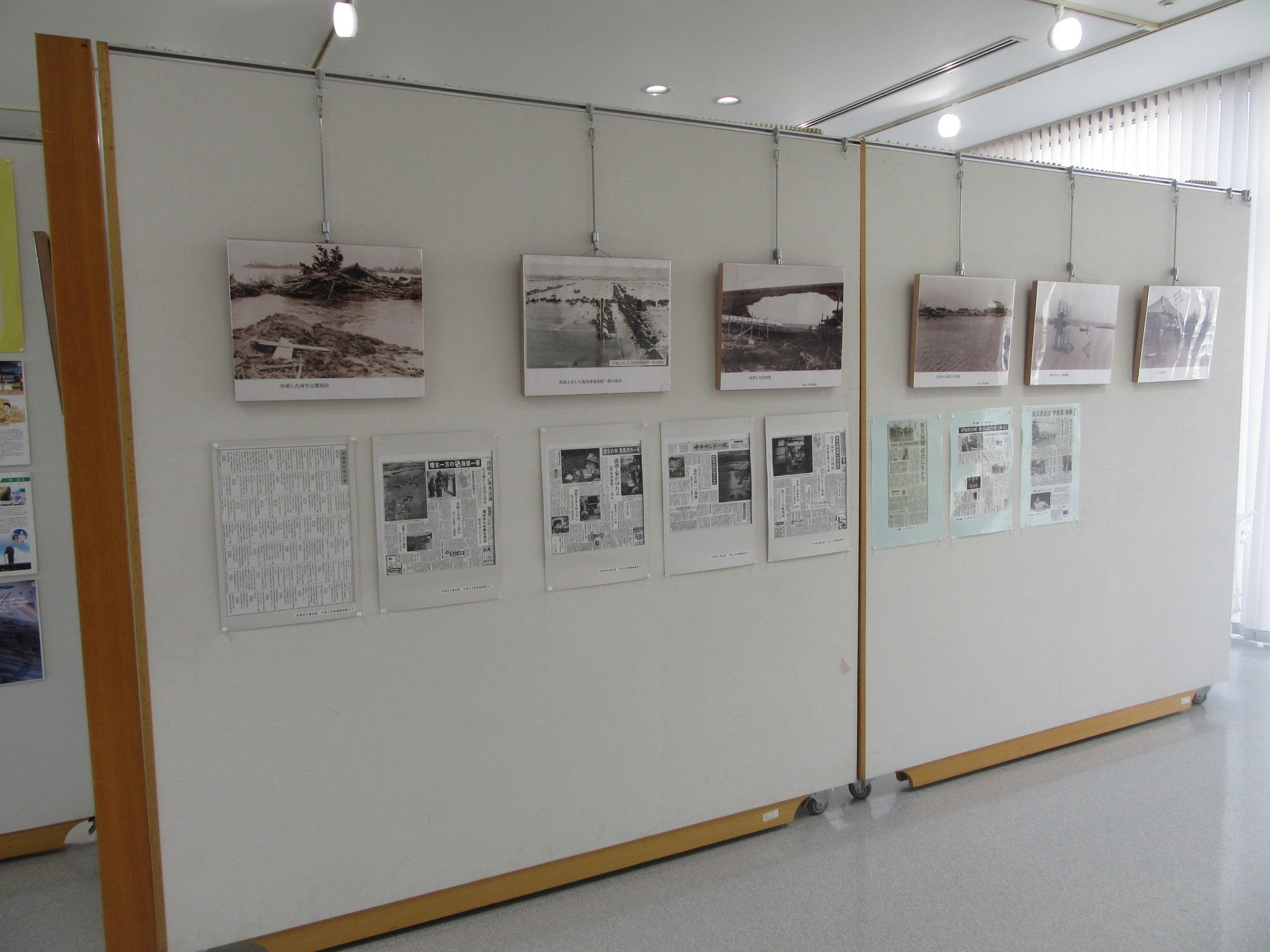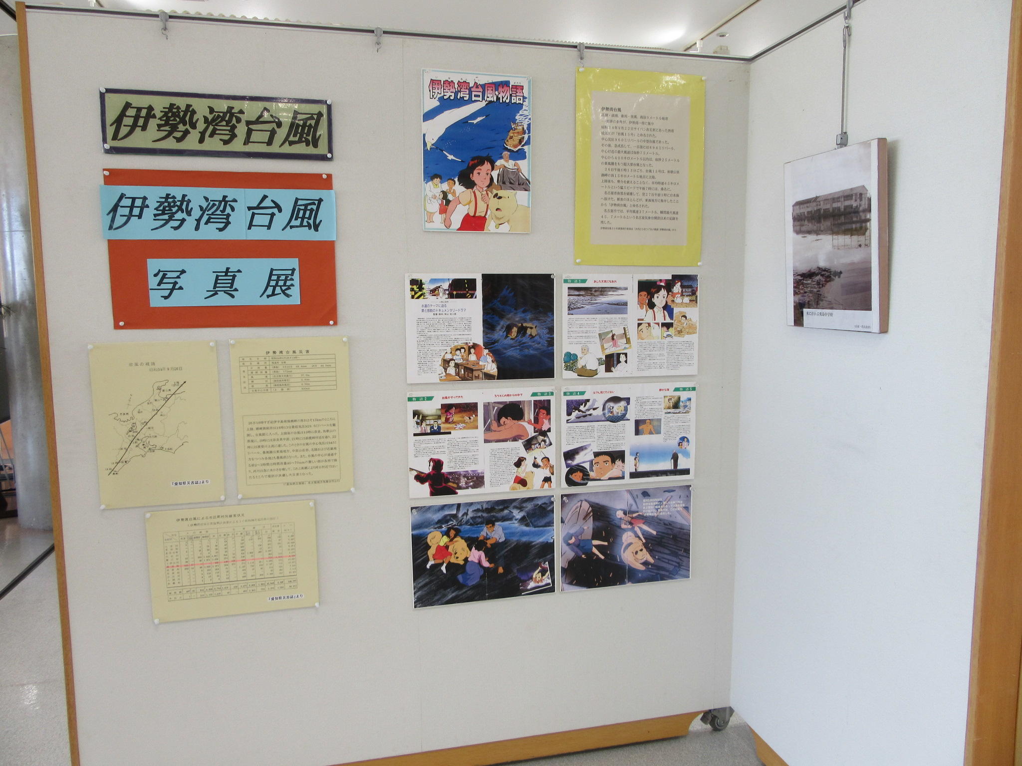 伊勢湾台風写真展 伊勢湾台風写真展として、展示コーナーに過去の写真や関連記事を飾っております。 伊勢湾台風を今一度振り返り、今後の防災対策のあり方について考えるための契機になればと思います。 是非ご覧ください。 【伊勢湾台風写真展】